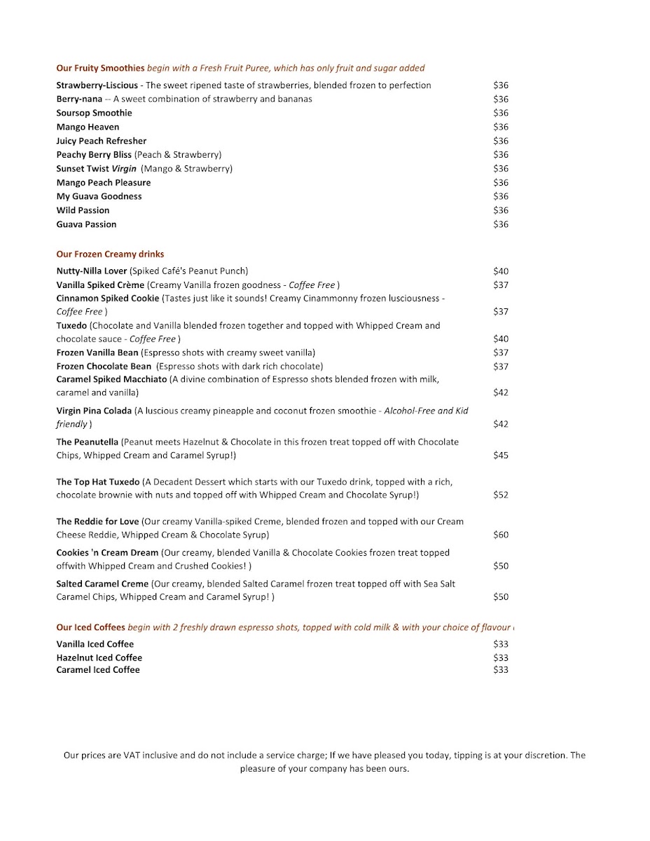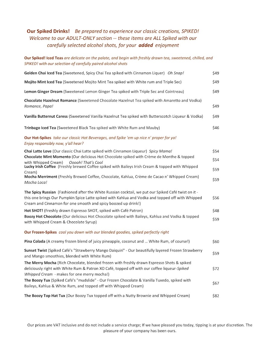Spiked Cafe Menu